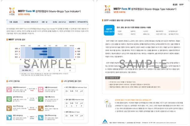 [MBTI FormM 일반검사지 샘플]